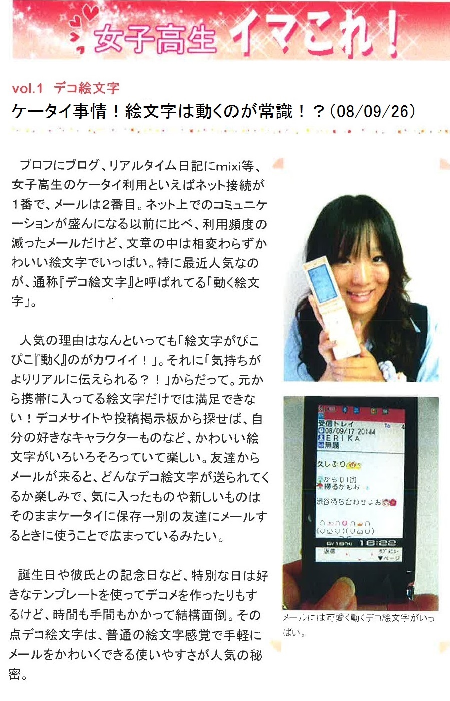 Vol.1(2008.09.26)デコ絵文字 ケータイ事情!絵文字は動くのが常識!?