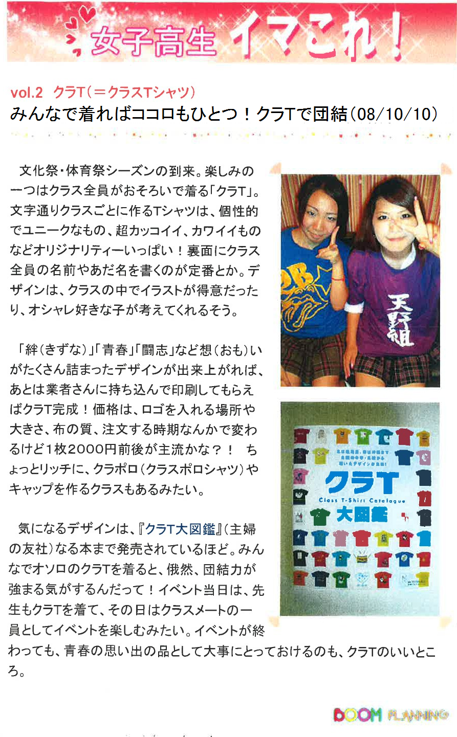 Vol.2(2008.10.10)クラT(=クラスTシャツ) みんねで着ればココロもひとつ!クラTで団結
