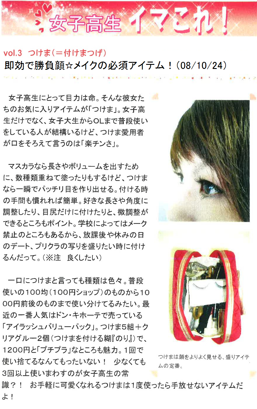 Vol.3(2008.10.24)つけま(=付けまつげ) 即効で勝負顔☆メイクの必須アイテム