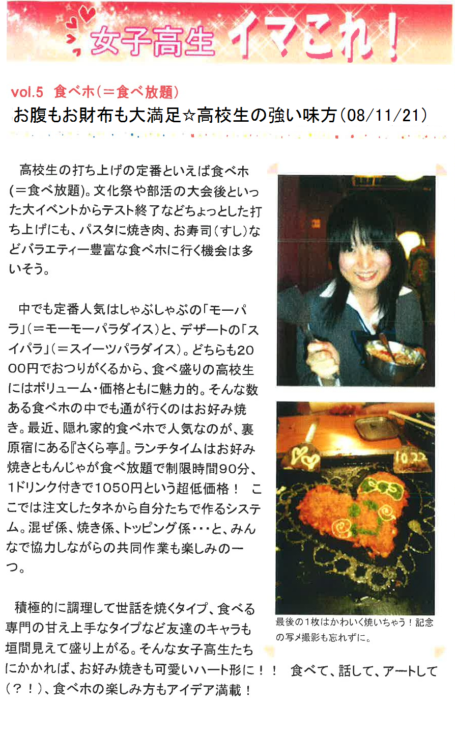 Vol.5(2008.11.21)食べホ(=食べ放題) お腹もお財布も大満足☆高校生の強い味方!
