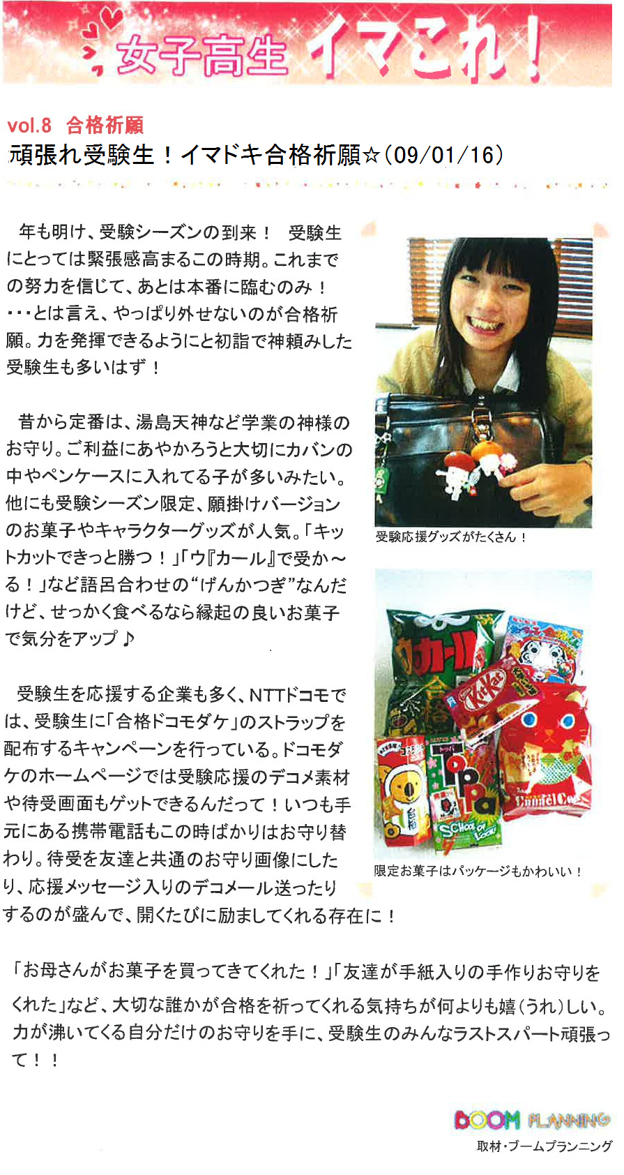 Vol.8(2009.01.16)合格祈願 頑張れ受験生!イマドキ合格祈願☆