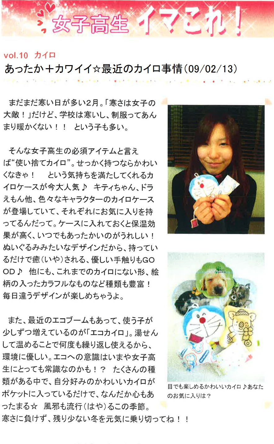Vol.10(2009.02.13)カイロ あったか+カワイイ☆最近のカイロ事情