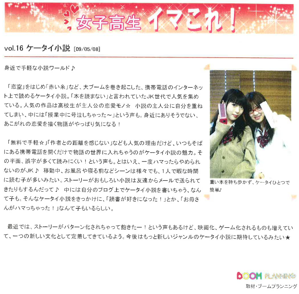 Vol.16(2009.05.08)ケータイ小説 身近で手軽な小説ワールド♪