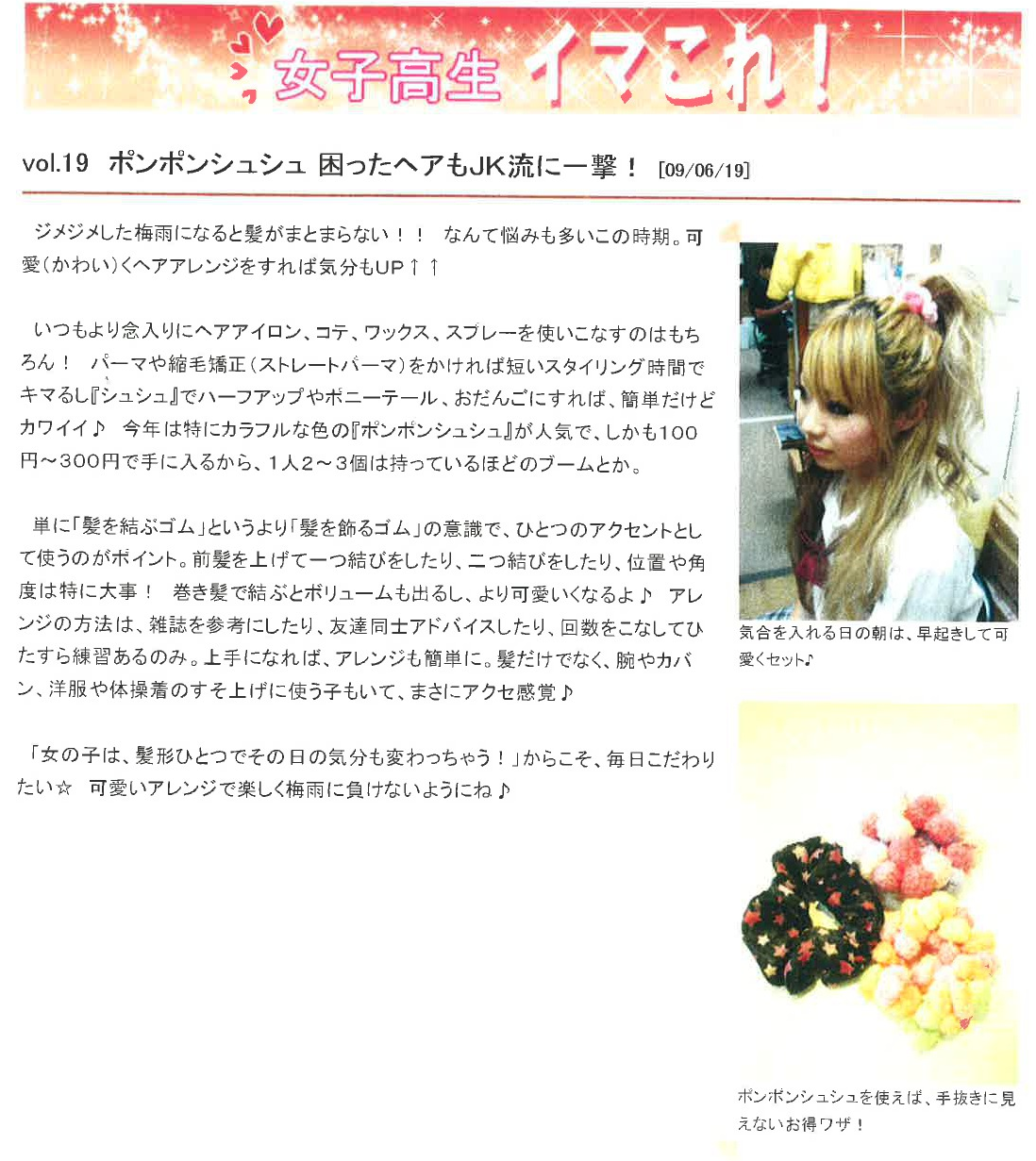 Vol.19(2009.06.19)ポンポンシュシュ 困ったヘアもJK流に一撃!
