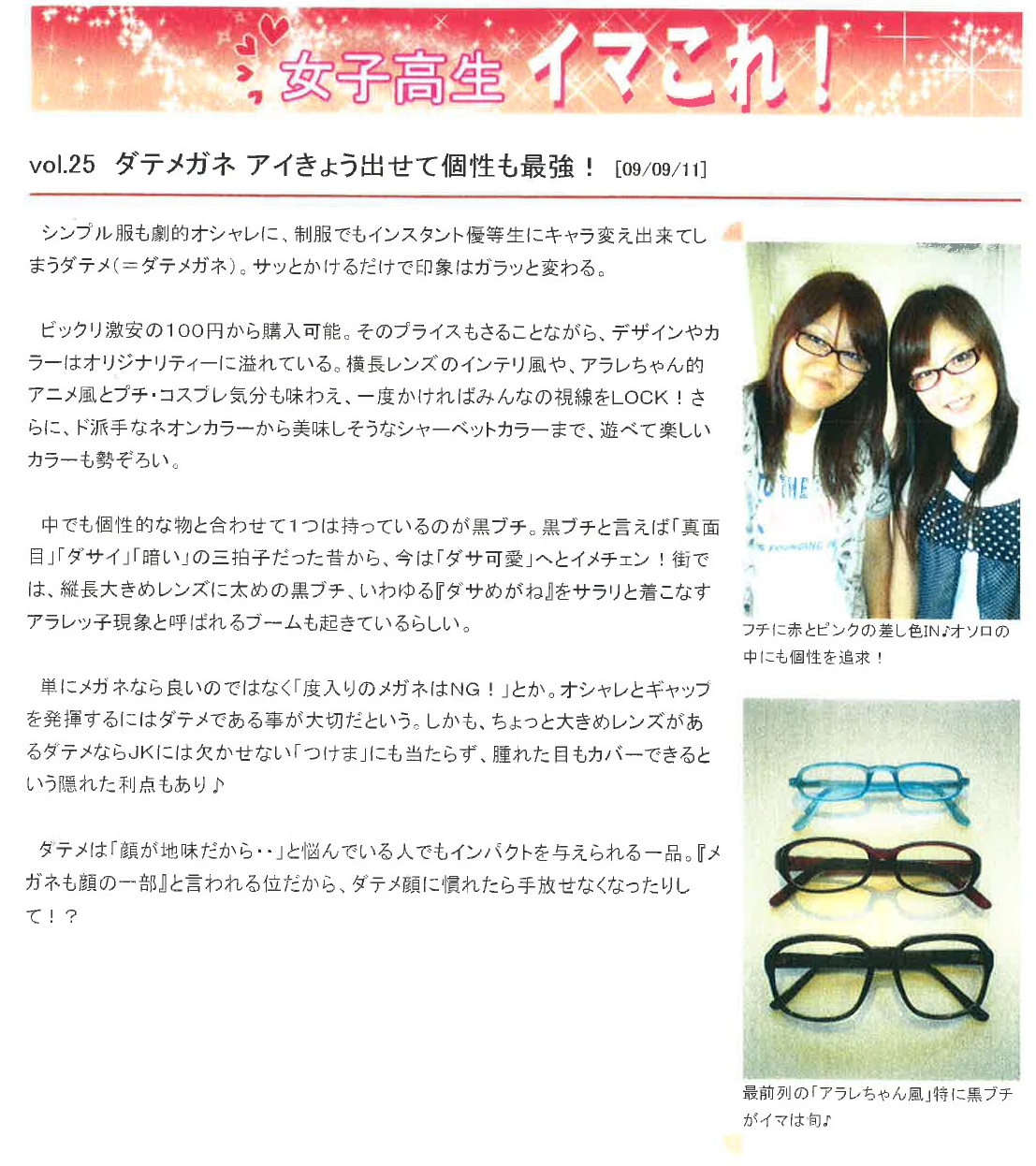 Vol.25(2009.09.11)ダテメガネ アイきょう出せて個性も最強!
