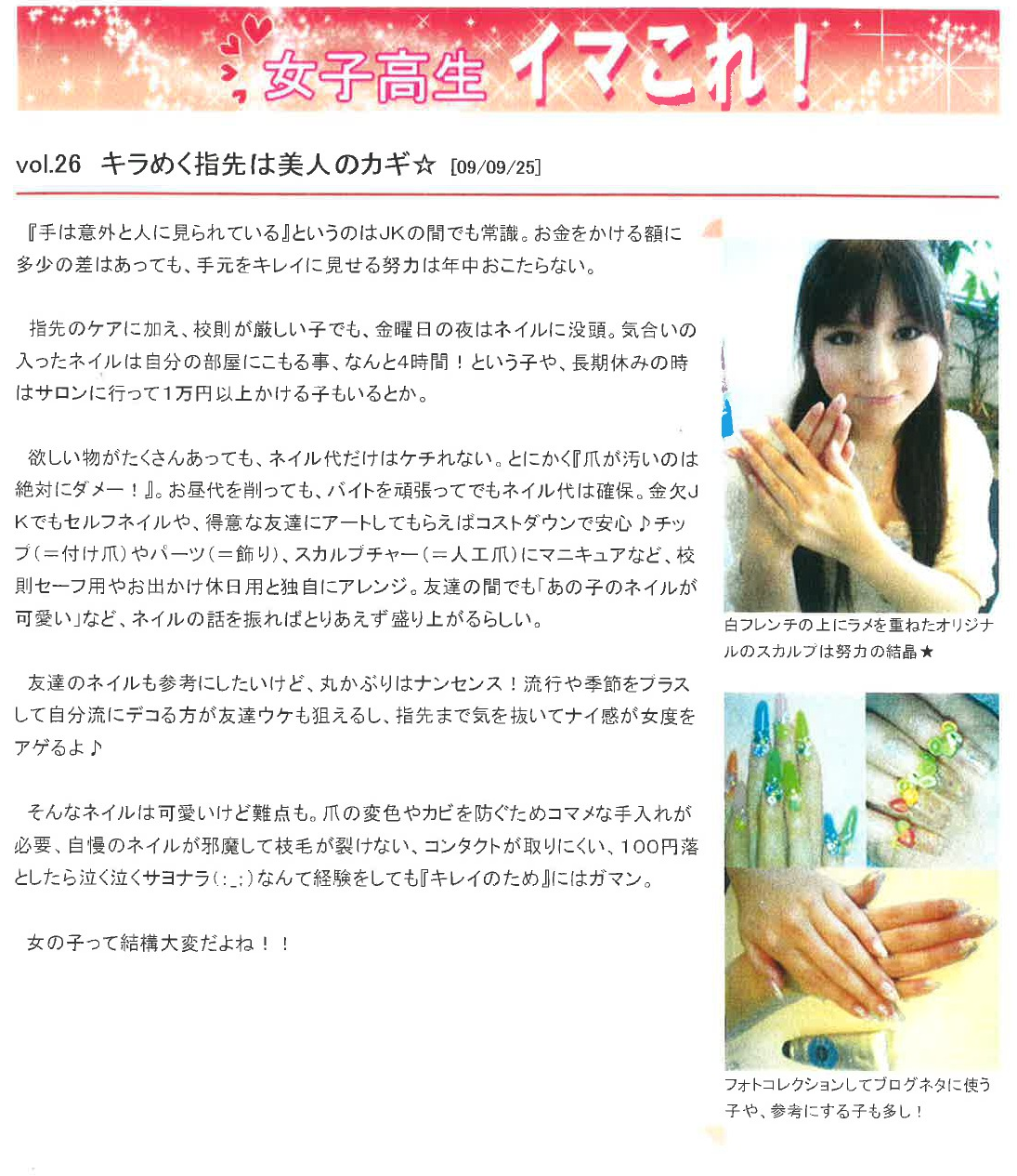 Vol.26(2009.09.25)キラめく指先は美人のカギ☆