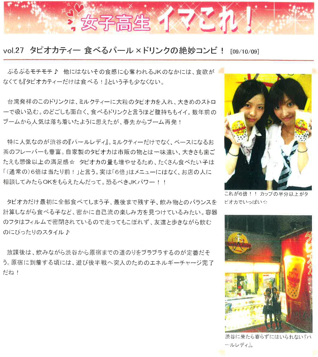 Vol.27(2009.10.09)タピオカティー 食べるパール×ドリンクの絶妙のコンビ!