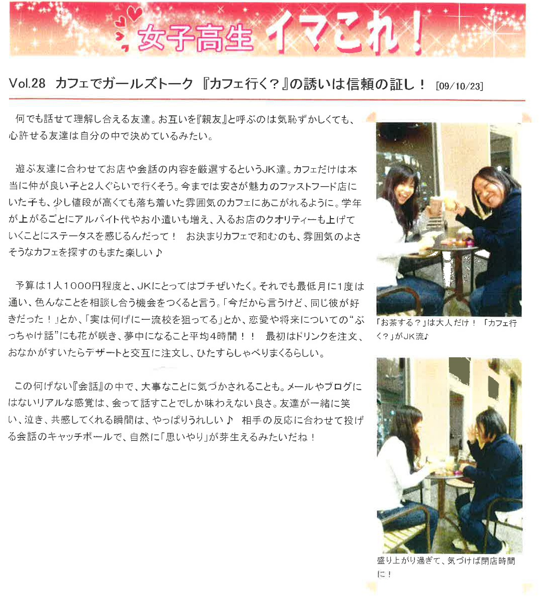 Vol.28(2009.10.23)カフェでガールズトーク 『カフェ行く?』の誘いは信頼の証し!