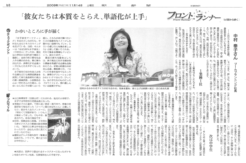 1986, Nakamura established a marketing group of joshikosei only. After graduating