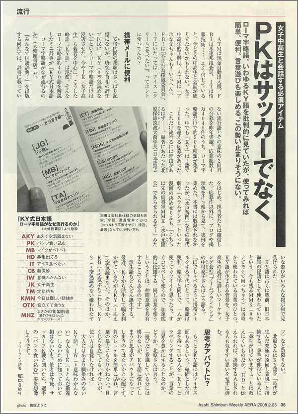 in April 2002, she wrote a bimonthly column for The Asahi Shimbun called "Uchira