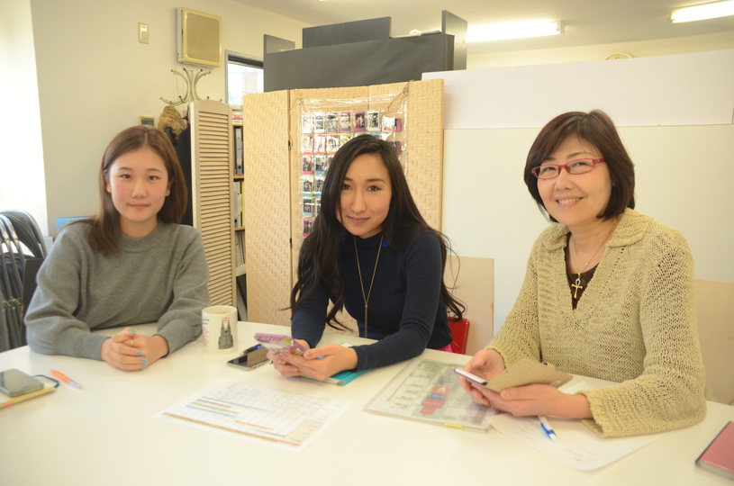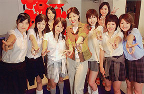 Yasuko Nakamura is surrounded by some of her teenage marketing consultants. |