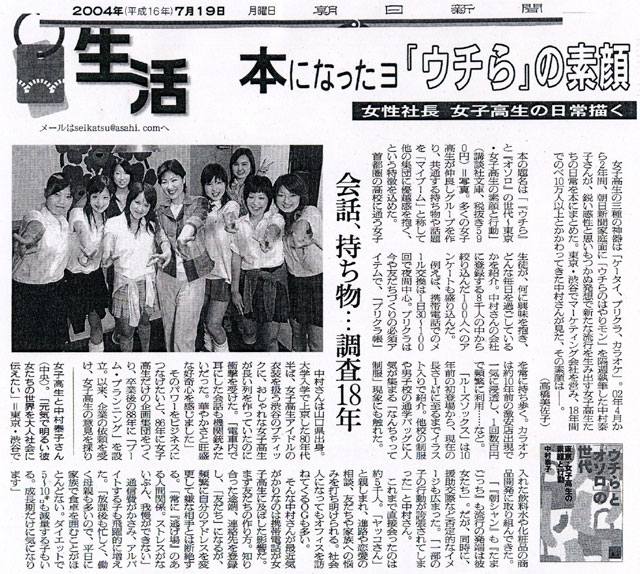 The book is “Uchira to Osoro no Sedai-Tokyo Joshikosei no Sugao" (The “uchira"
