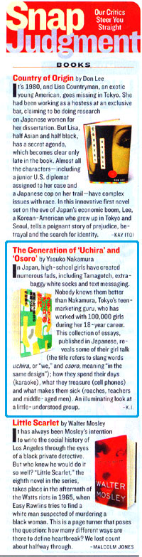 and “osoro" generation: unadorned high school girls of Tokyo. Kodansha, 620