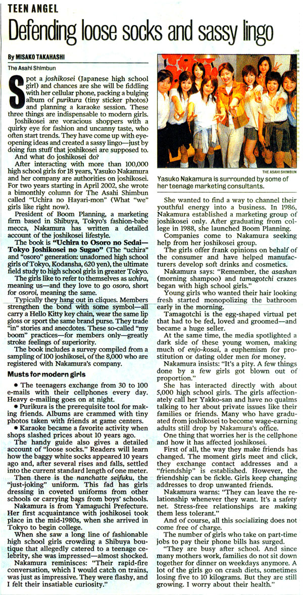 Nakamura and her company are authorities on joshikosei. For two years starting